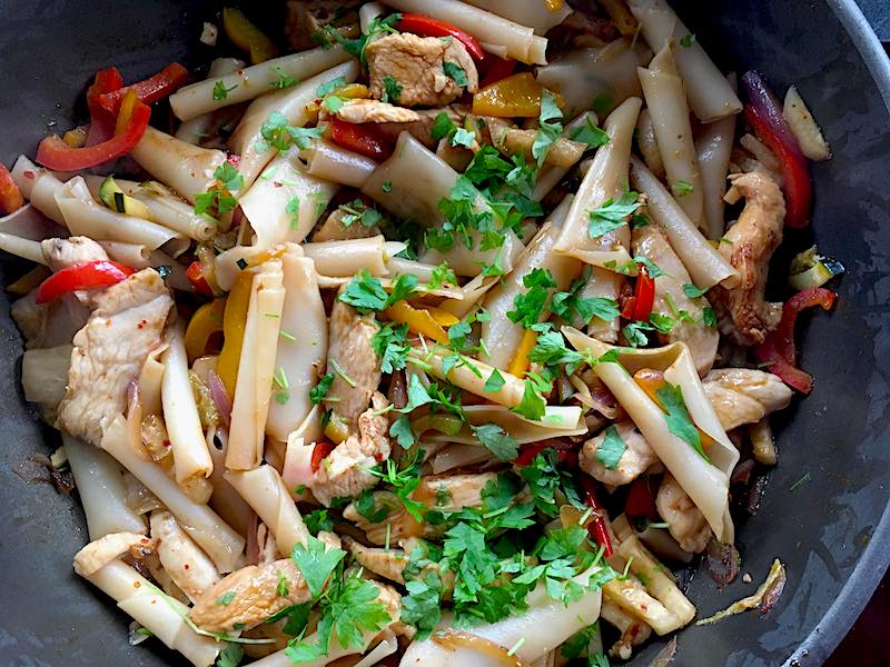 . PS – Jednak nie miałam makaronu nitki z ryżu, soi, fasoli czy batata wcale, miałam ryżowe, chińskie kwadraciki a’la nasze łazanki, więc tak “złamałam” przepis podstawowy. Na zdjęciu – moje łazankowe japche z kurczakiem (jednak, bo ja nie jestem wege 🙂)